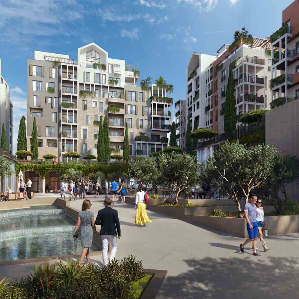 Este nuevo barrio está diseñado orgánicamente. Tiene una plaza central donde todo y todos se reúnen. Los espacios le invitan a quedarte, conectar y disfrutar con toda la comodidad que necesita y nuevos amigos para conocer. El proyecto también cuenta con un hotel dedicado al wellness y un centro de ocio con boutiques para ir de compras de sol a sol y una vida nocturna fuera de horario para los que quieran divertirse mucho.